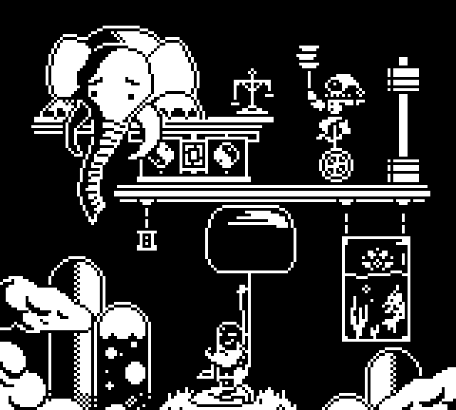 The initial screen of a Tetris like game in GameBoy more focused on balancing weight on both sides.